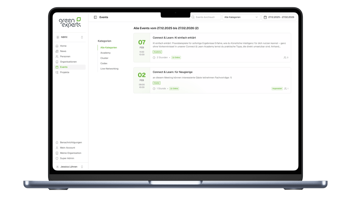 Mit der GreenExperts Plattform haben wir eine digitale Heimat für die Macher der Energiewende geschaffen. Der Fokus lag auf einer intuitiven Benutzeroberfläche, die es Nutzern ermöglicht, ohne technische Hürden Profile zu erstellen, Projekte zu finden und direkt in den Austausch zu treten.